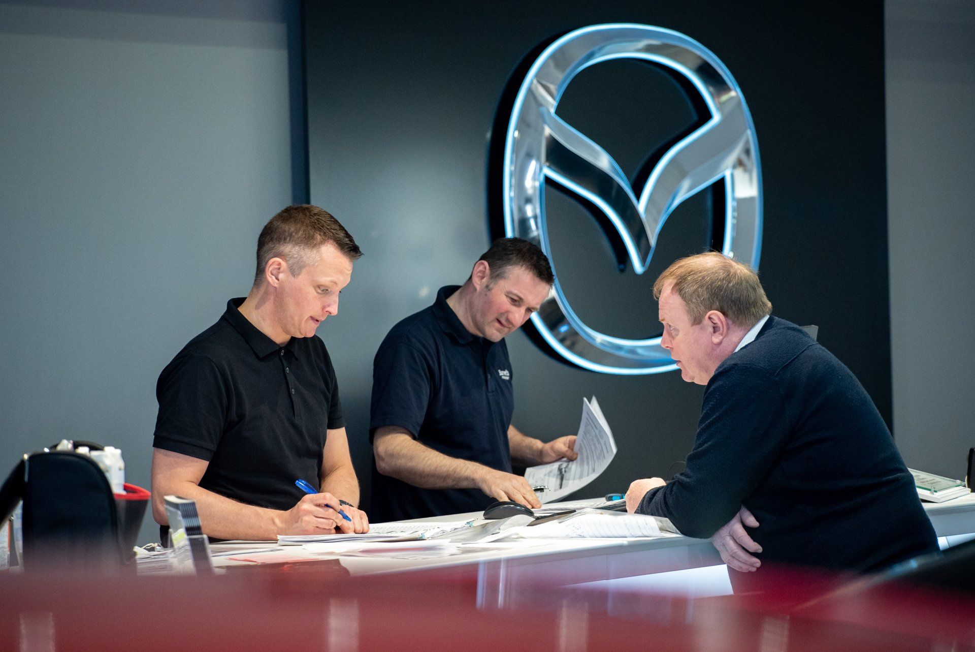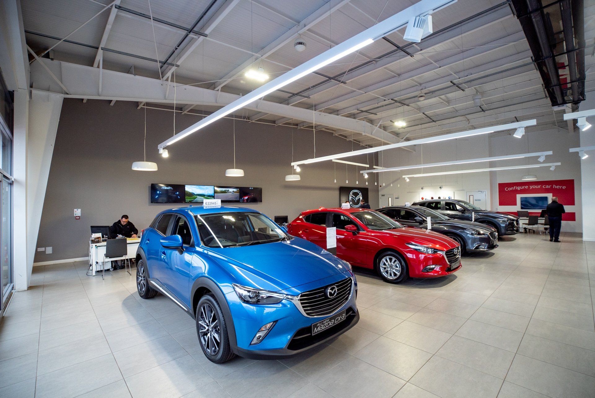 Mazda were rolling out their brand new interior concept and so our Mazda dealership took the opportunity to renovate our showroom to the latest standards. Some extra touches were added such as video wall, car configurator areas and ipad controlled digital LED lighting.